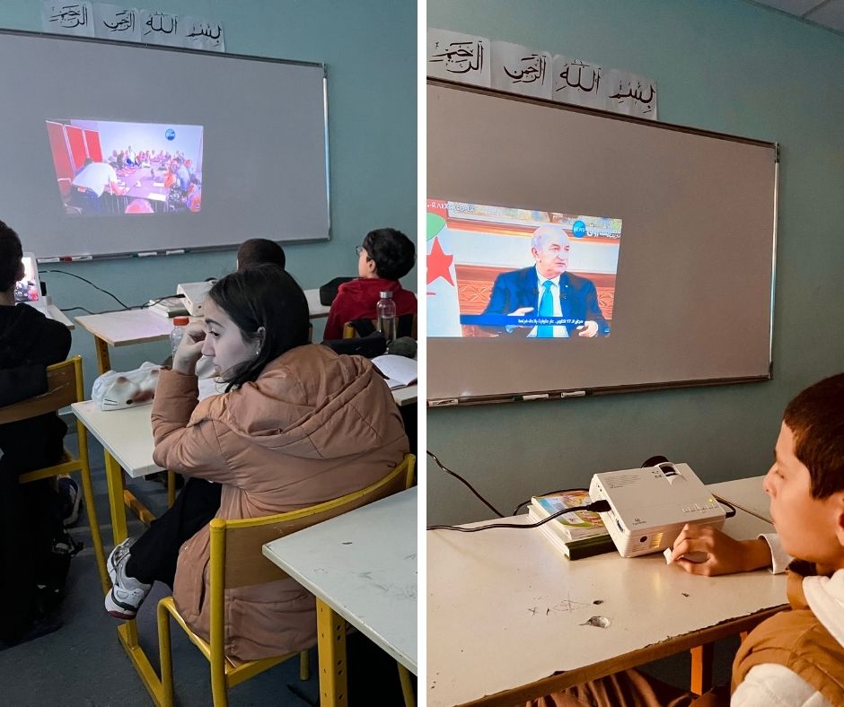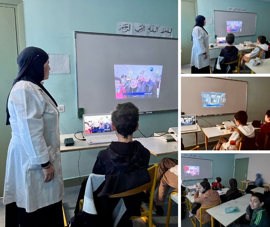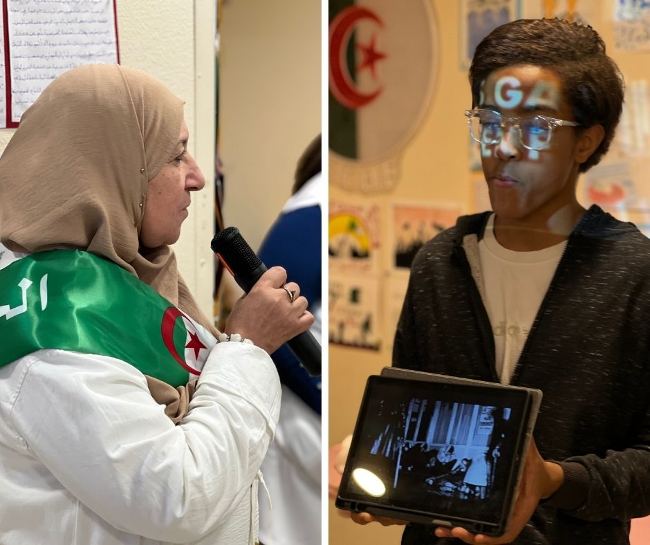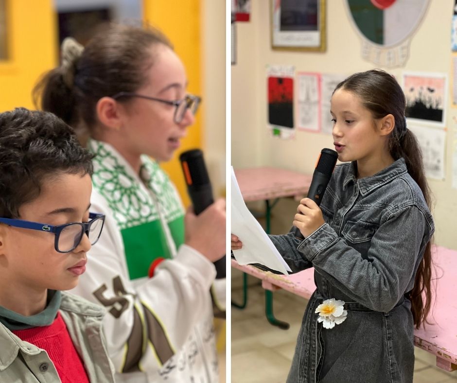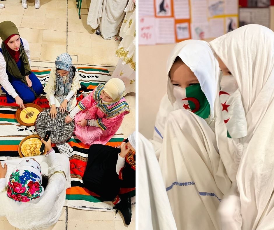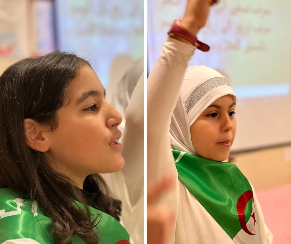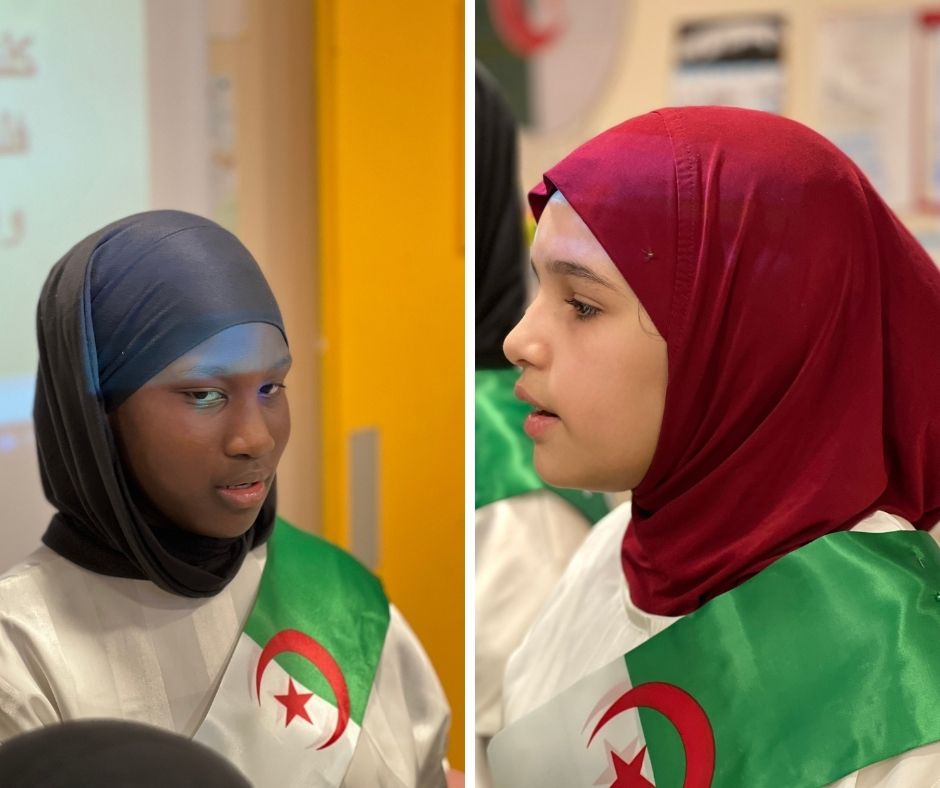Après la récitation de versets coraniques, l’hymne national algérien et le mot d’ouverture de Mme la Directrice, les élèves du primaire ont proposé une série de lectures, chants, poèmes, dessins et expositions évoquant les luttes du peuple algérien pour la liberté et la dignité.