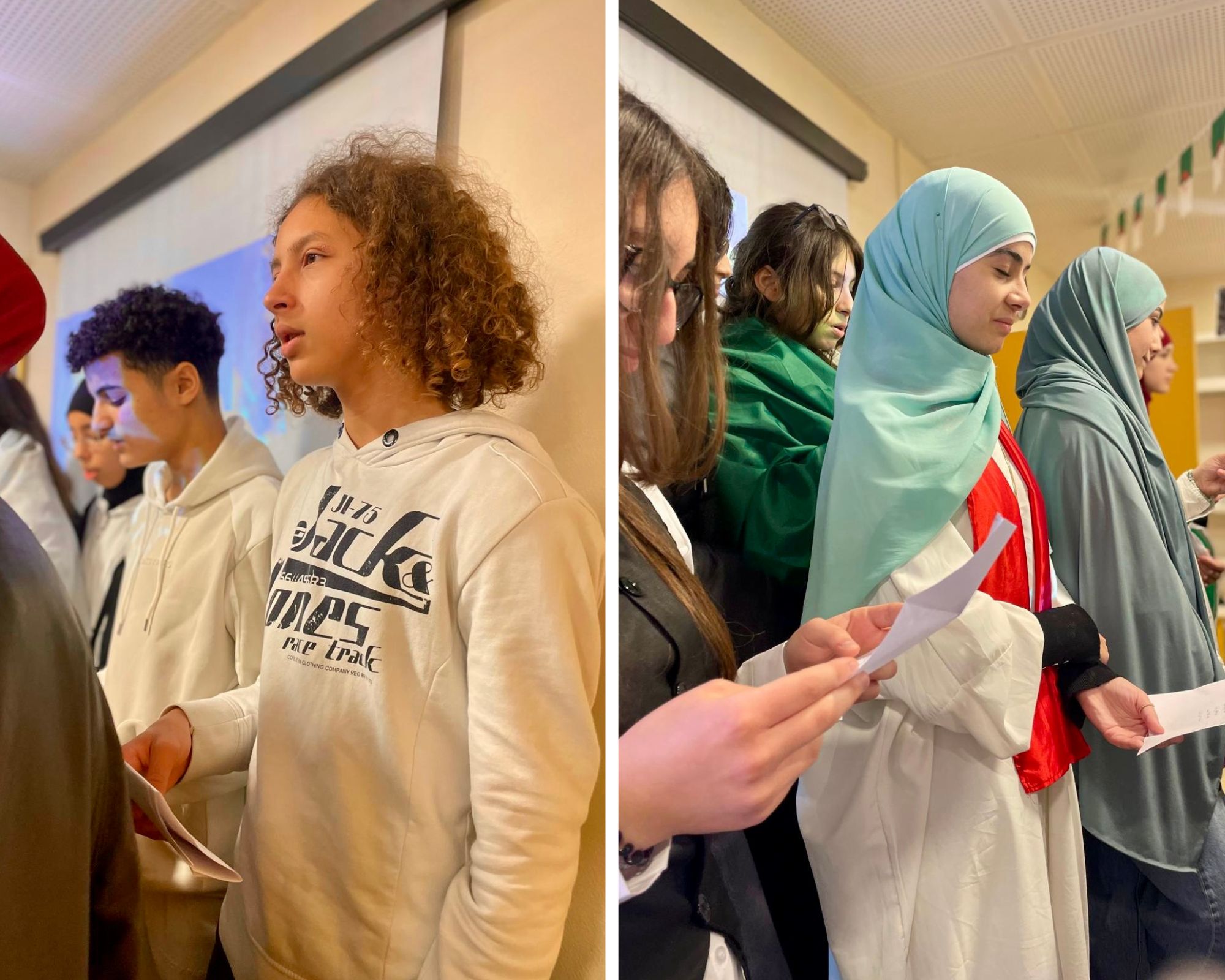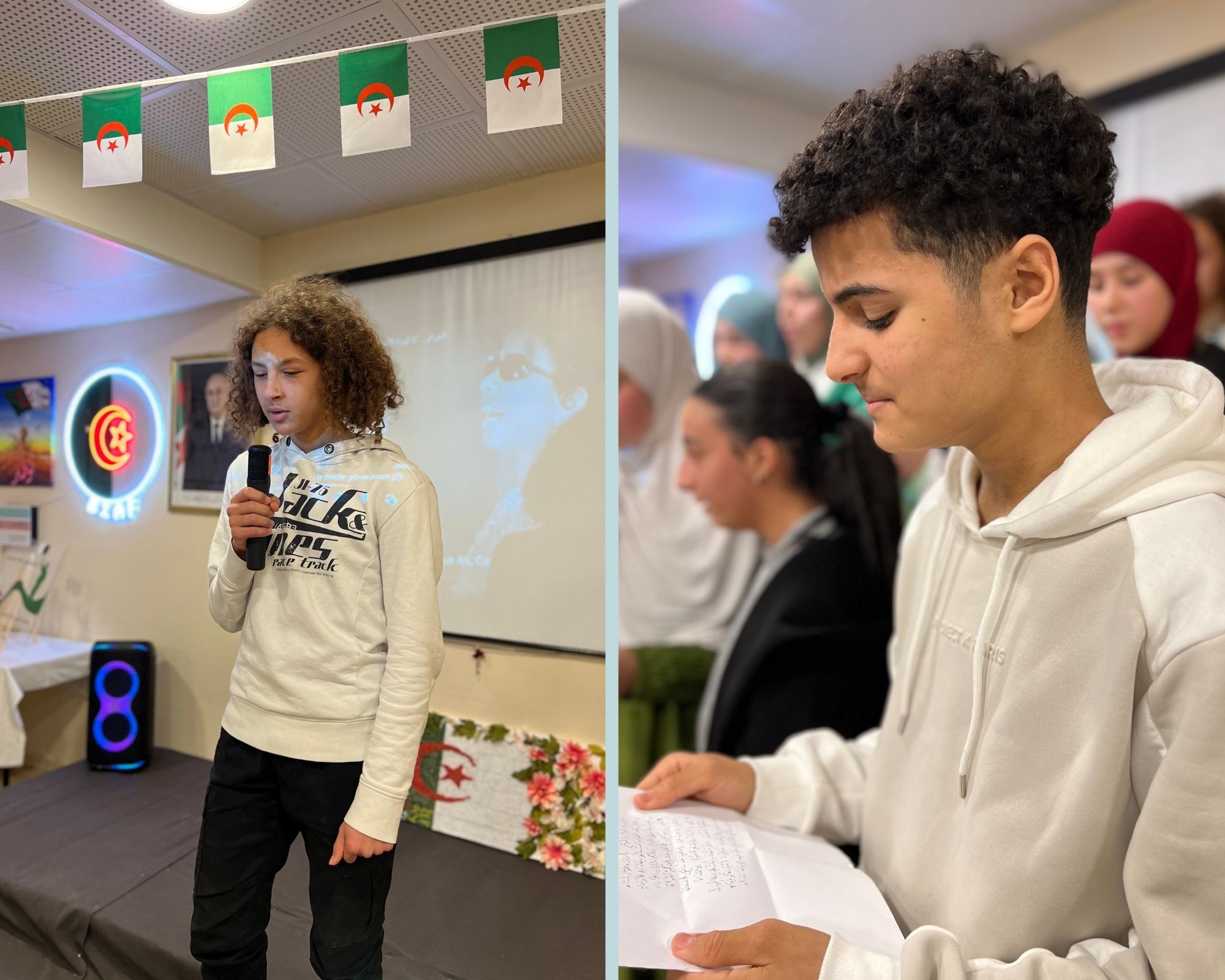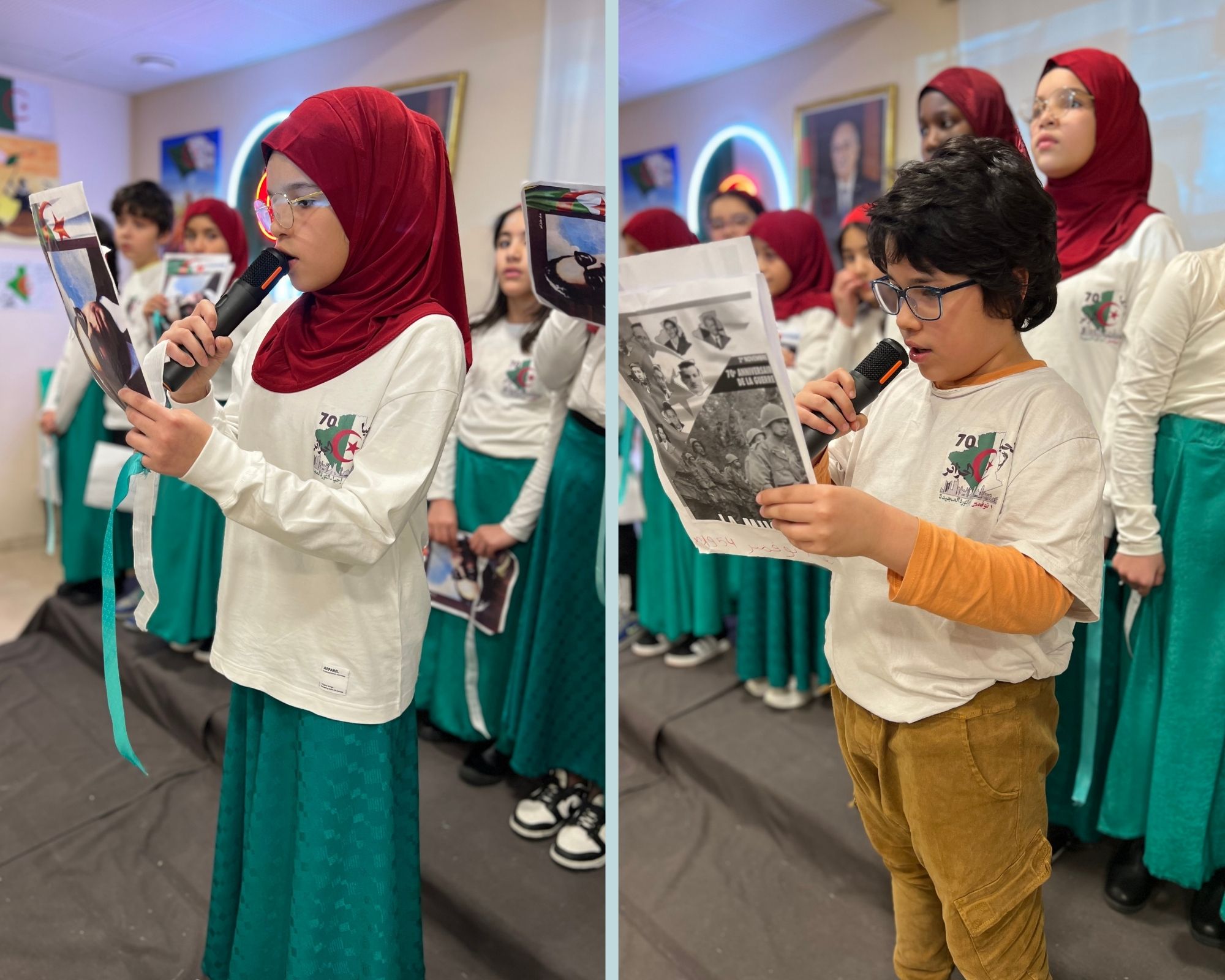 Les 4AP2 ont ouvert avec la chanson « J’écris ton nom, mon pays », suivie de « Novembre est une histoire de lutte ». Ils ont ensuite récité « L’Iliade Algérienne » du poète Mufdi Zakaria, pour finir avec la pièce de théâtre « S’ils étaient parmi nous ».