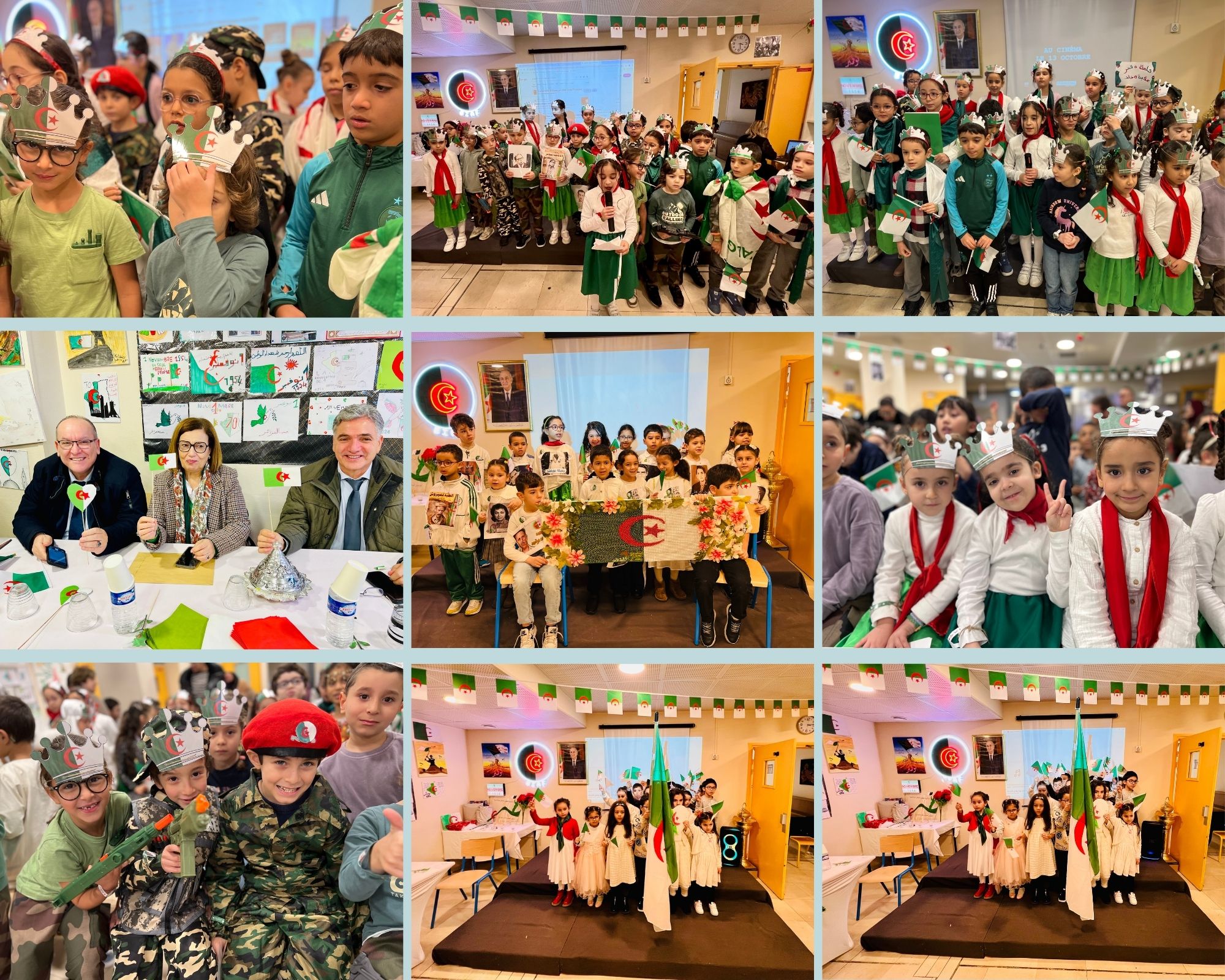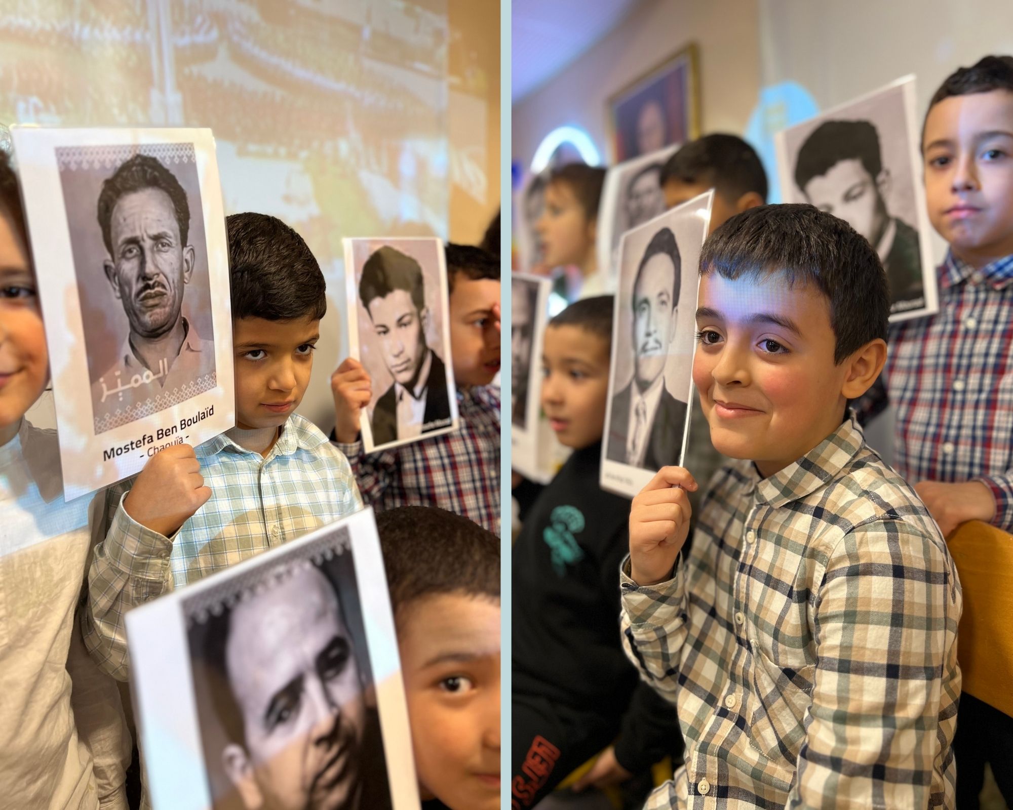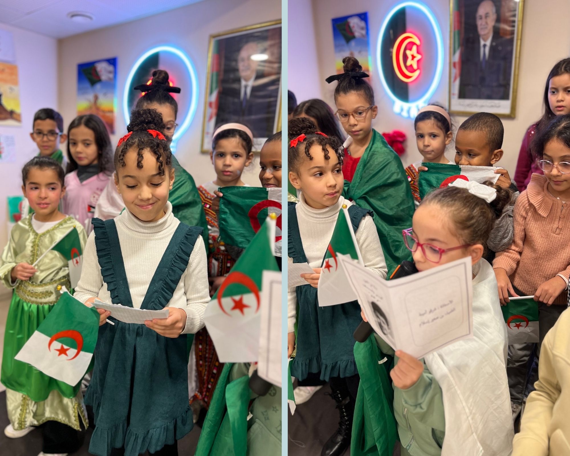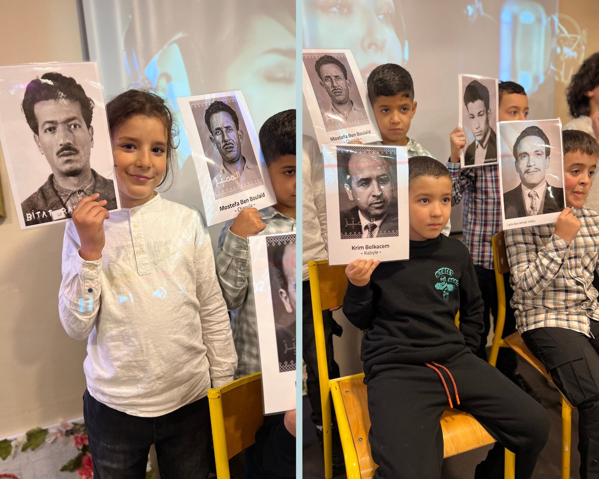Durant la journée dédiée aux élèves du cycle moyen au site « Bouret », diverses activités ont été organisées pour enrichir leur compréhension de l’histoire révolutionnaire. La célébration a commencé par une récitation coranique de l’élève Jouani, suivie par le chant collectif de l’hymne national.