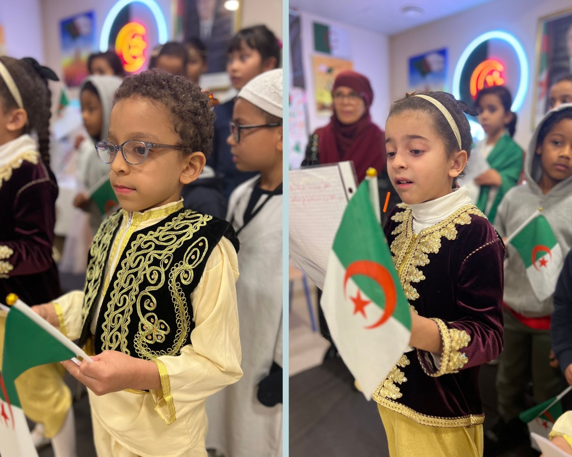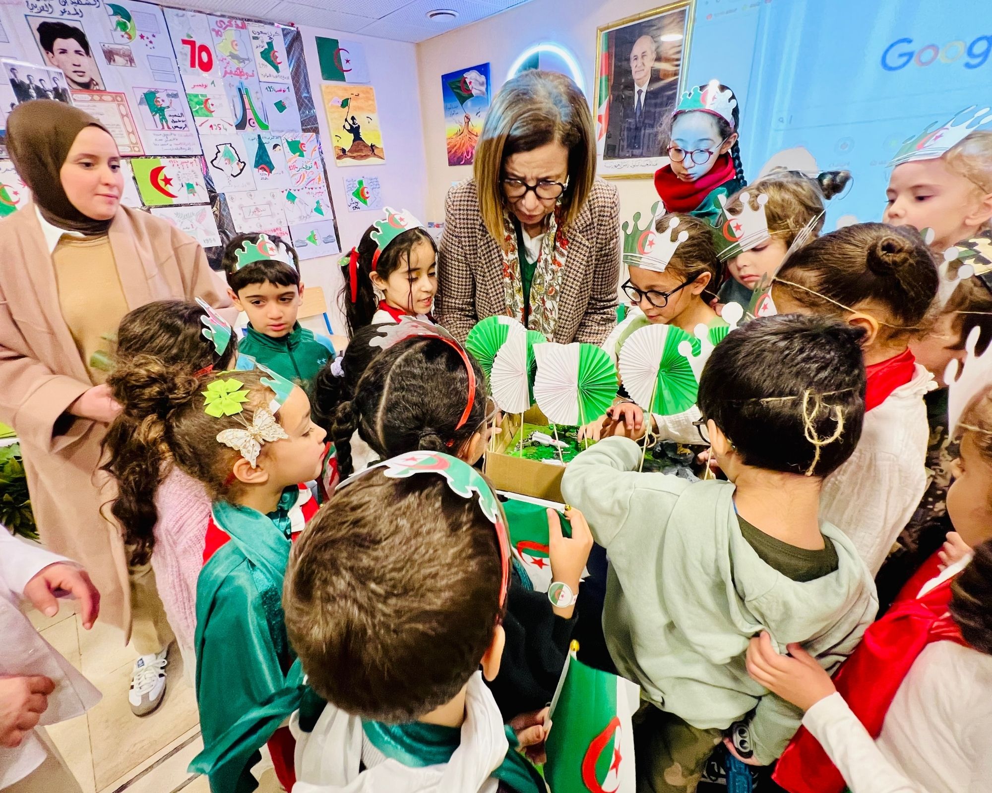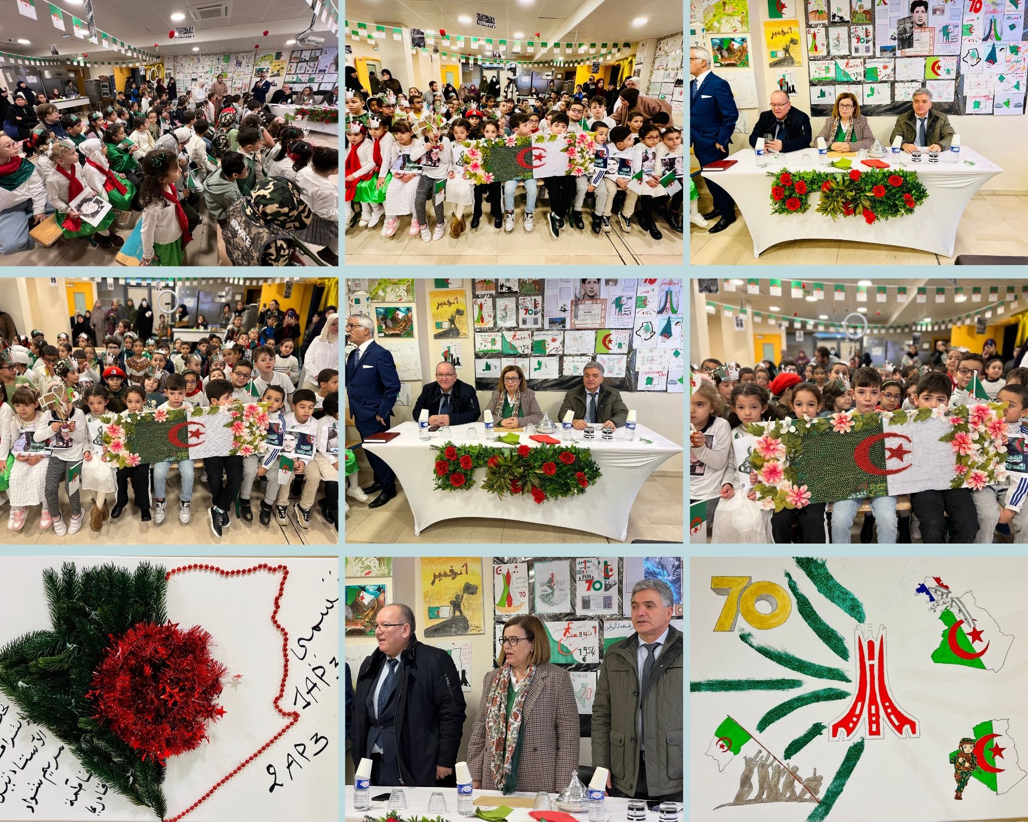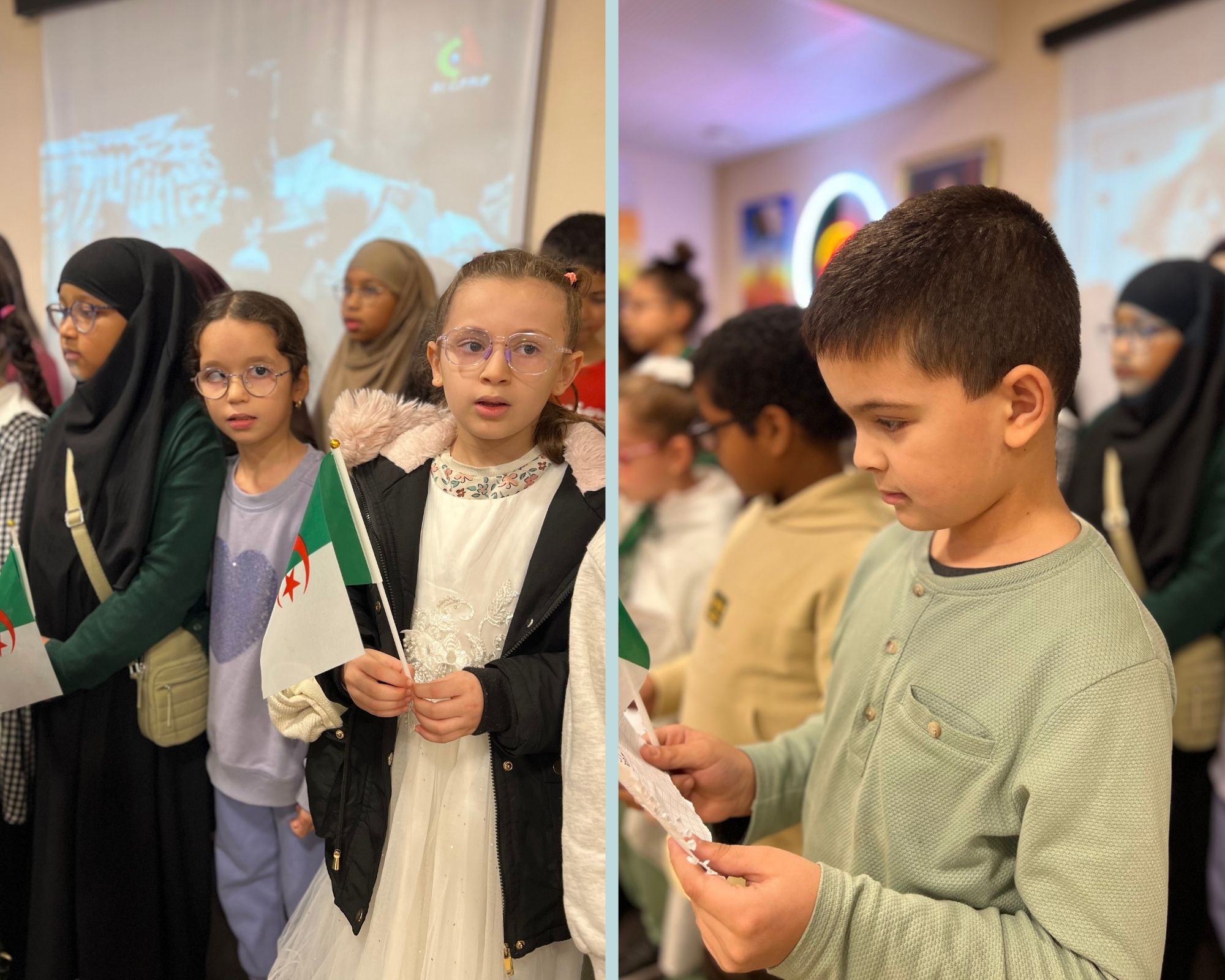 Durant la journée dédiée aux élèves du cycle moyen au site « Bouret », diverses activités ont été organisées pour enrichir leur compréhension de l’histoire révolutionnaire. La célébration a commencé par une récitation coranique de l’élève Jouani, suivie par le chant collectif de l’hymne national.
