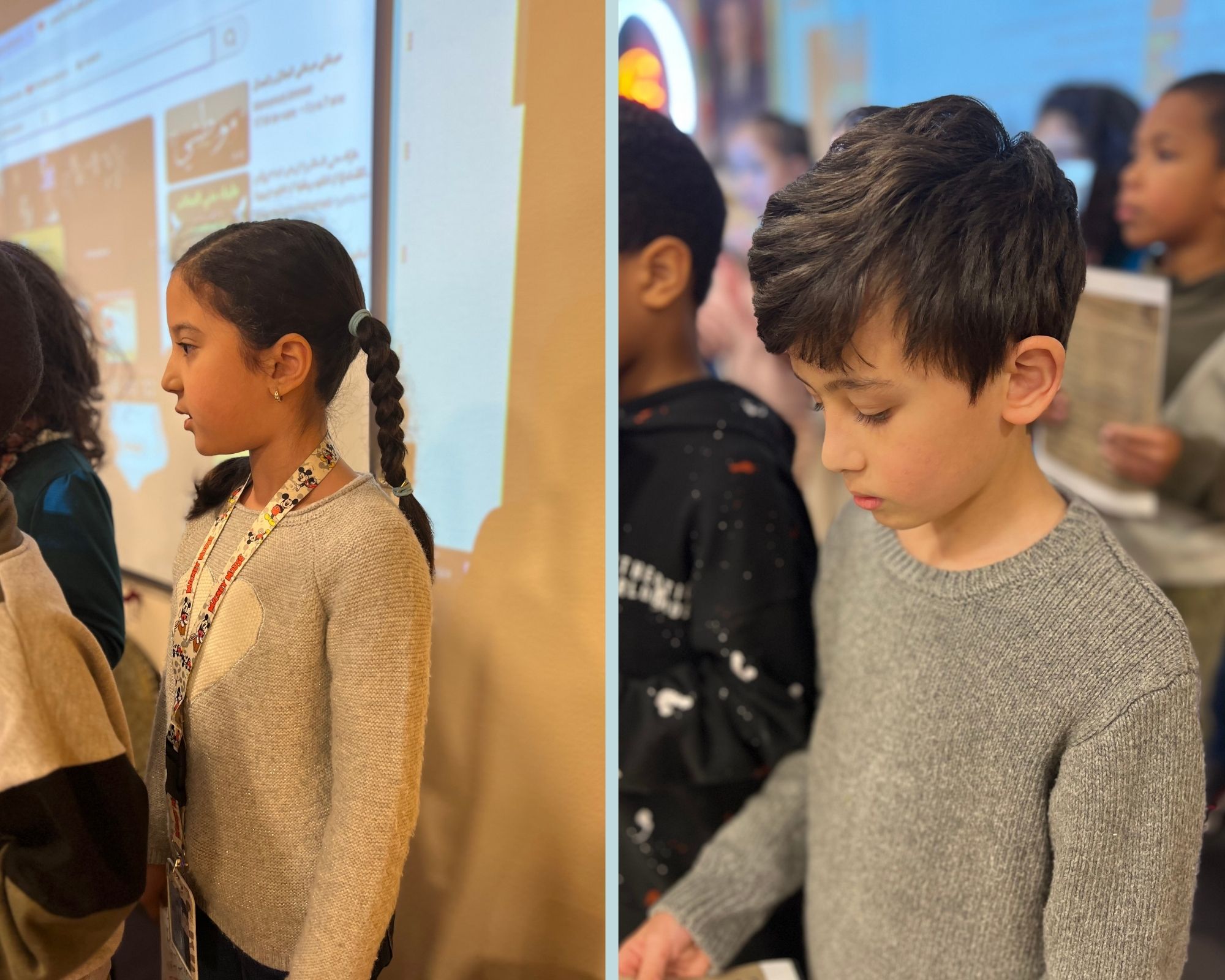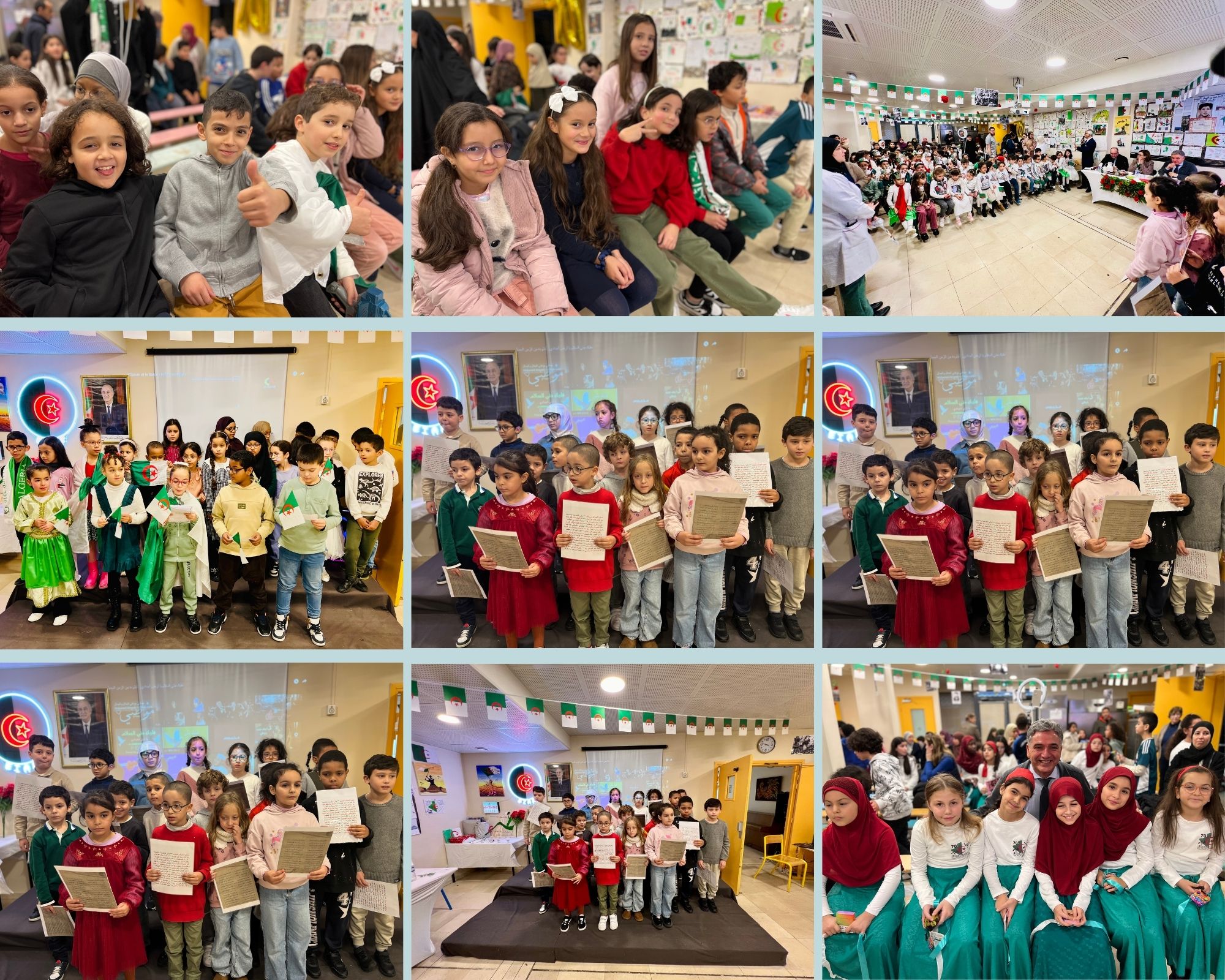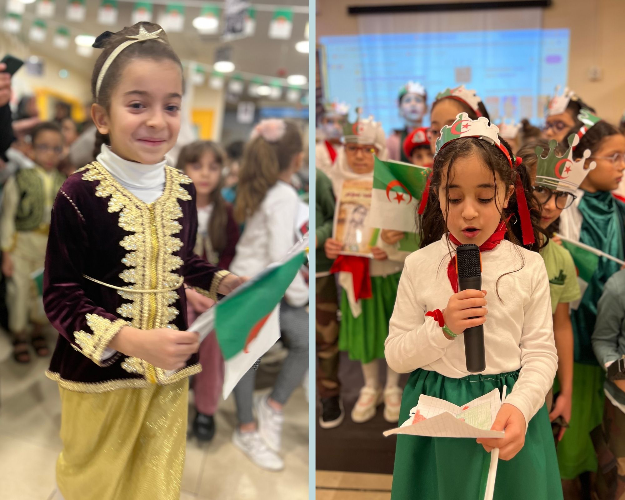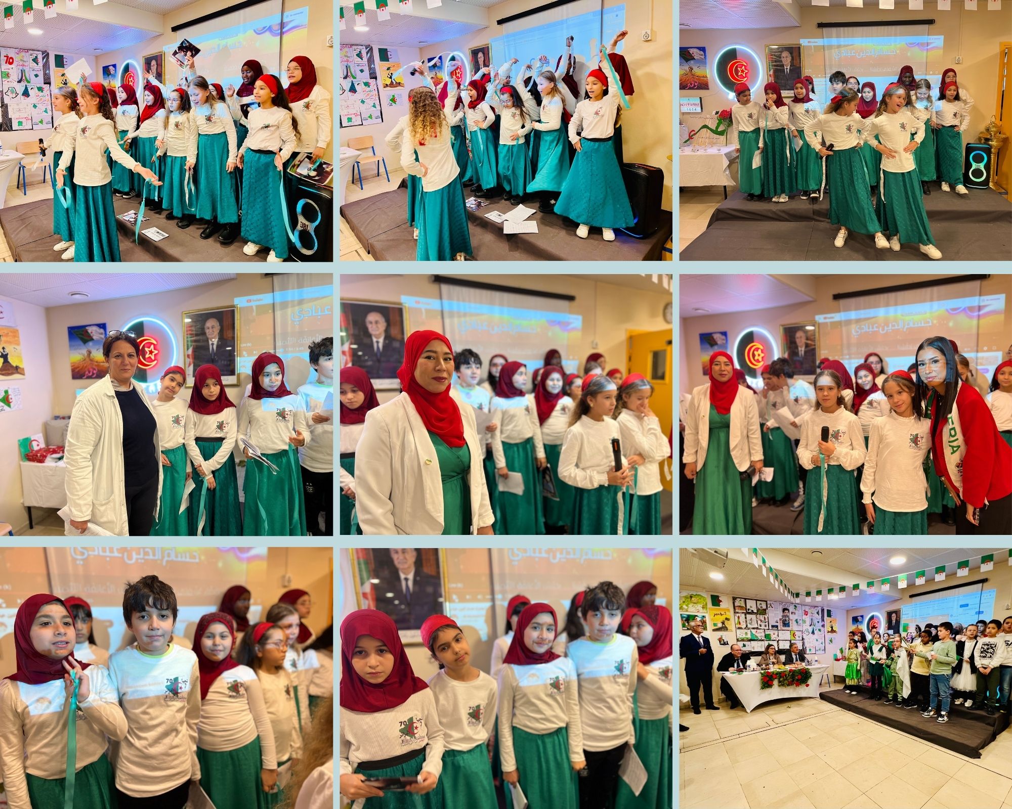 La journée a débuté avec les élèves de 1AP1, qui ont récité des versets coraniques avant de chanter l’hymne national et l’hymne des martyrs, tout en brandissant des drapeaux nationaux. Ils ont poursuivi avec l’hymne « Mes frères, n’oubliez pas les martyrs ».