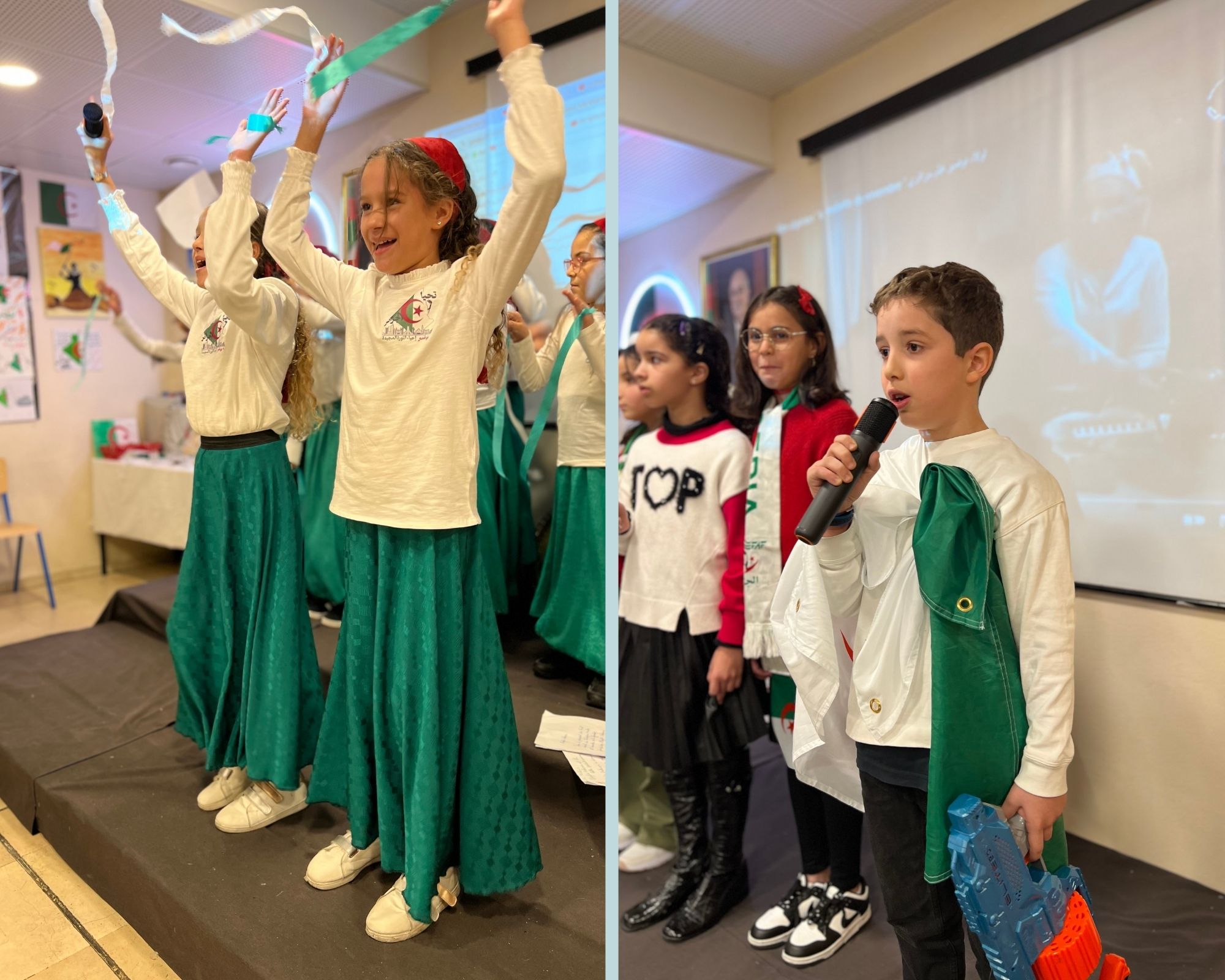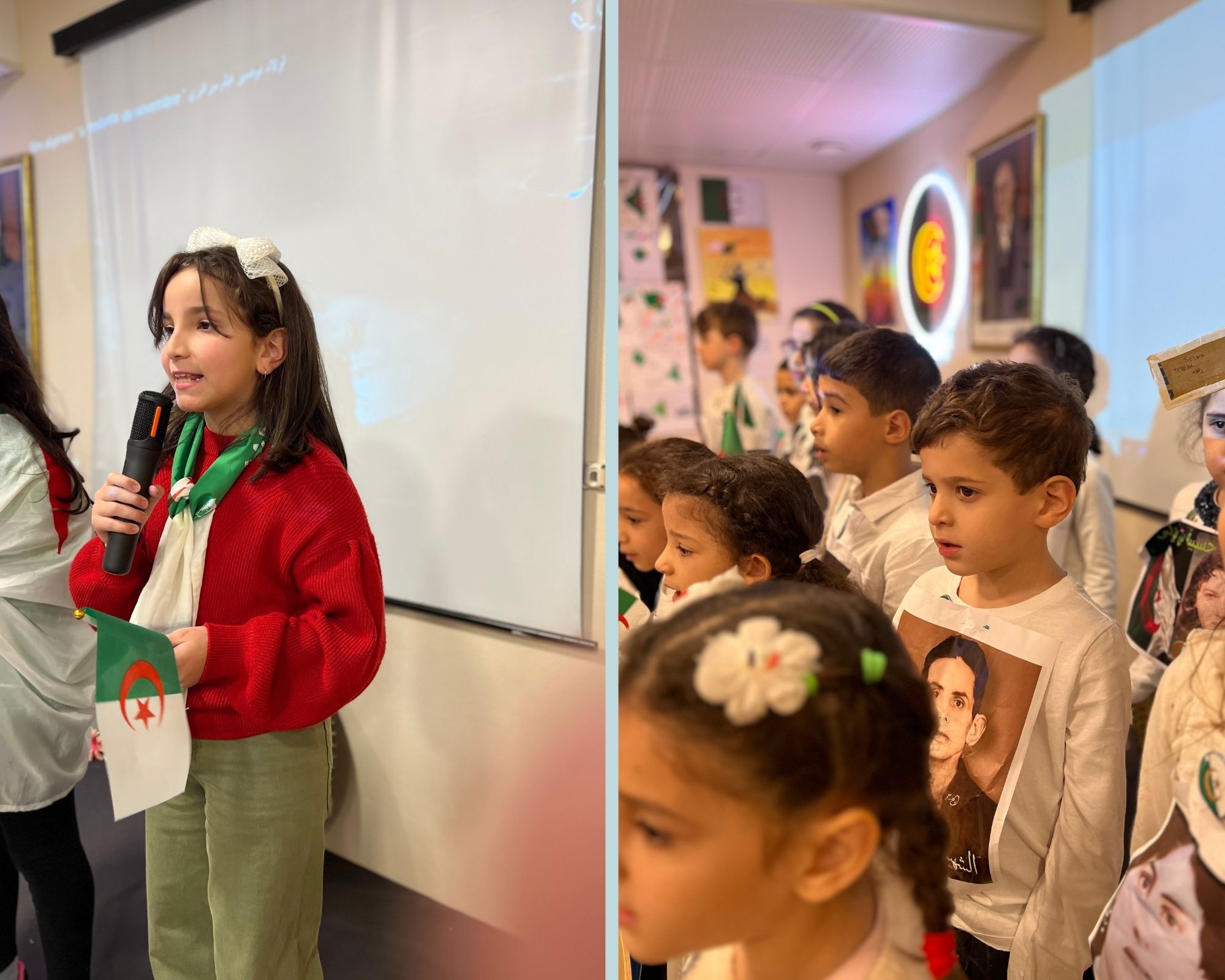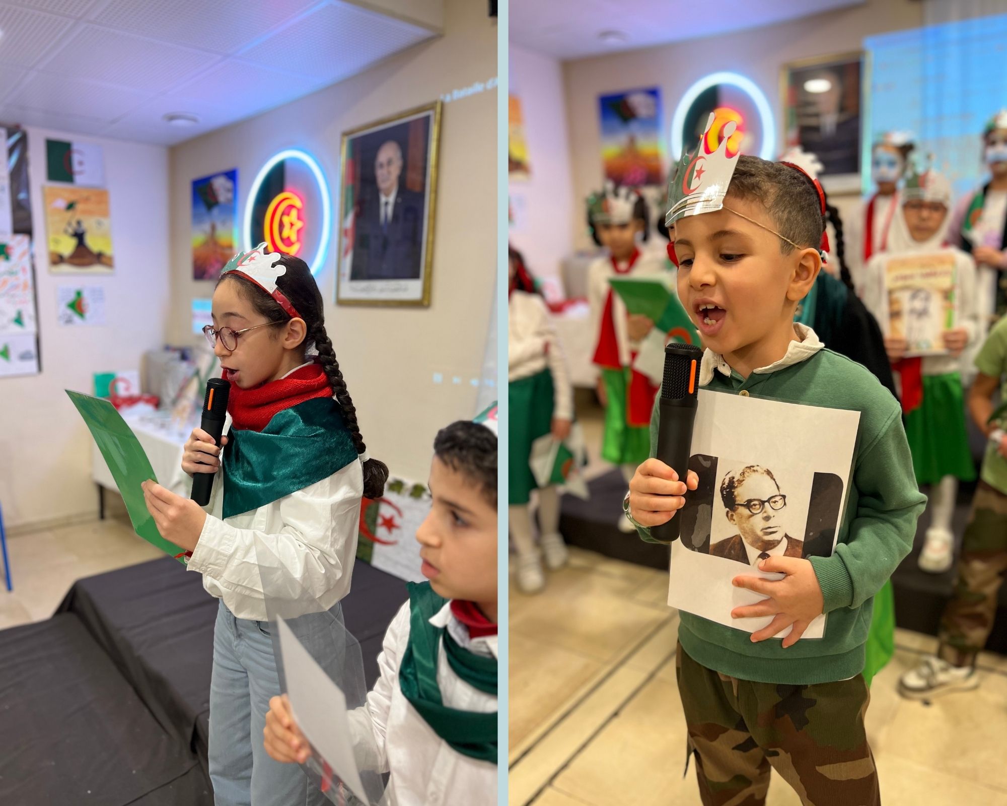 Les 3AP1 ont présenté une pièce de théâtre intitulée “Le petit Omar”, accompagnée d’une exposition de photos. Pendant ce temps, les élèves de 3AP2 ont entonné l’hymne « L’Algérie, ma terre d’ancêtres ».