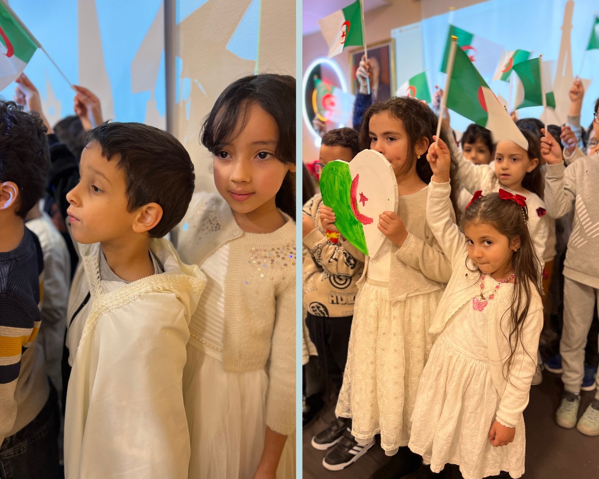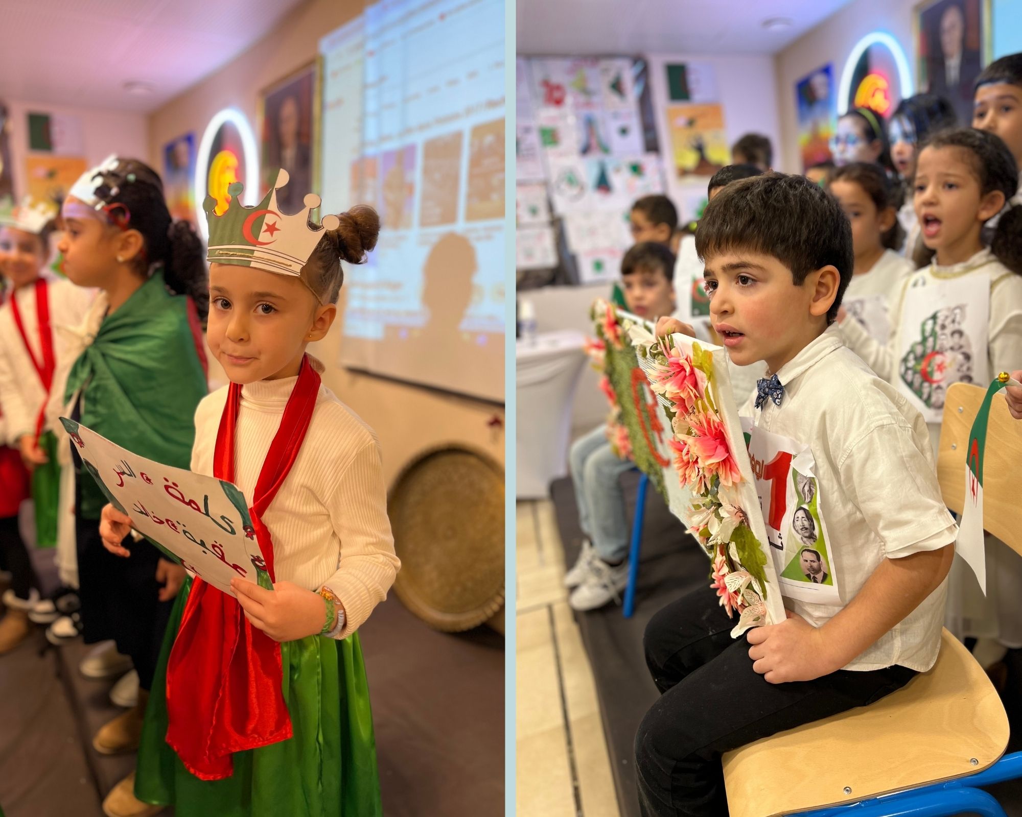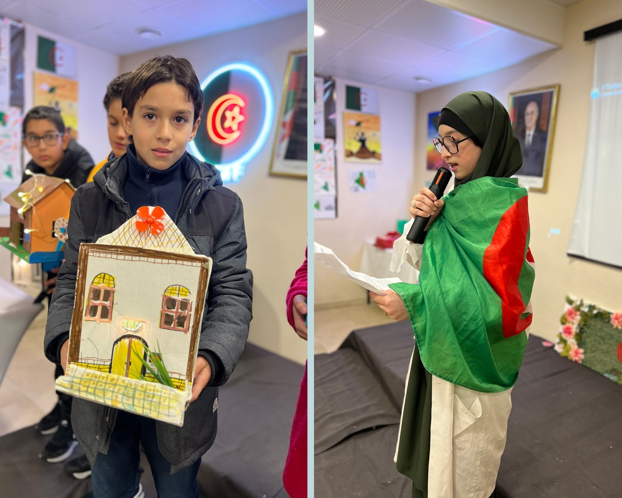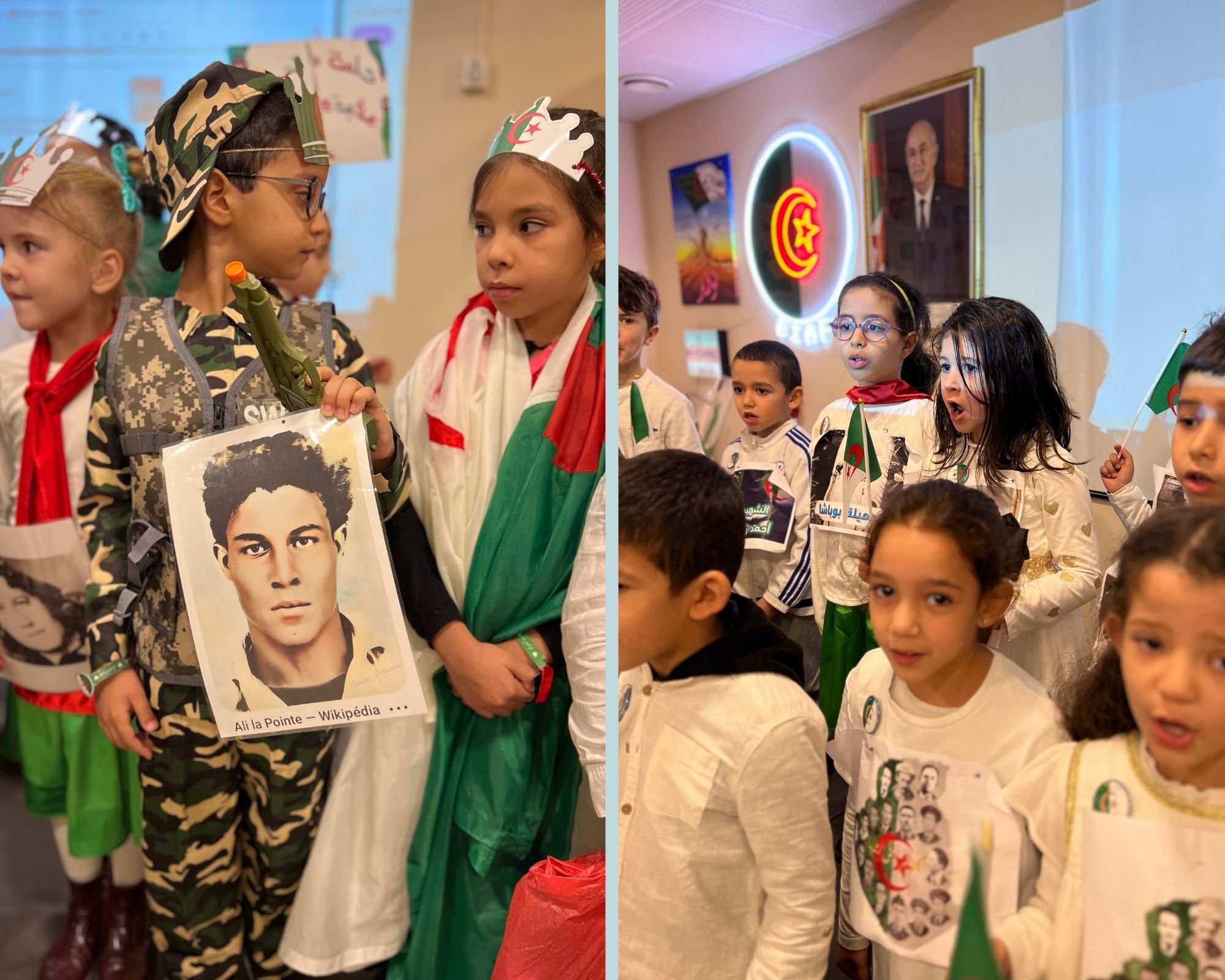 Les 3AP1 ont présenté une pièce de théâtre intitulée “Le petit Omar”, accompagnée d’une exposition de photos. Pendant ce temps, les élèves de 3AP2 ont entonné l’hymne « L’Algérie, ma terre d’ancêtres ».