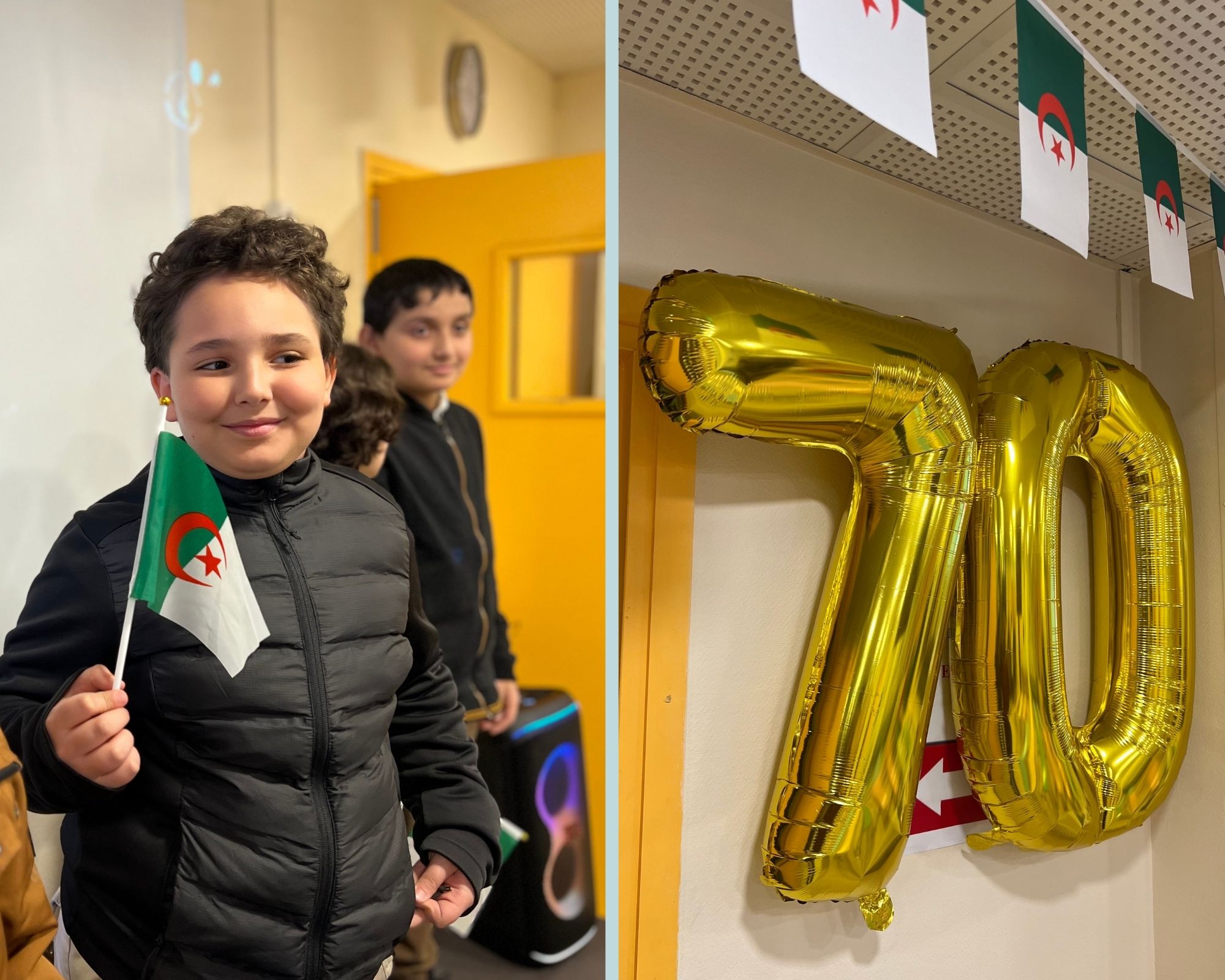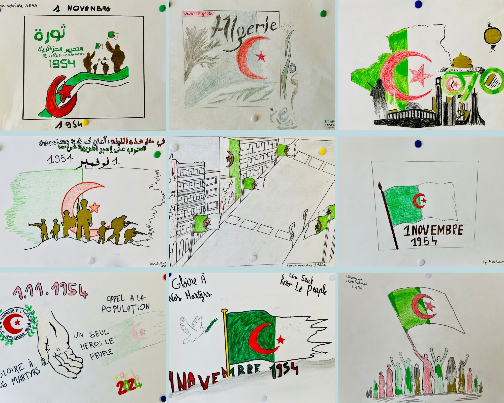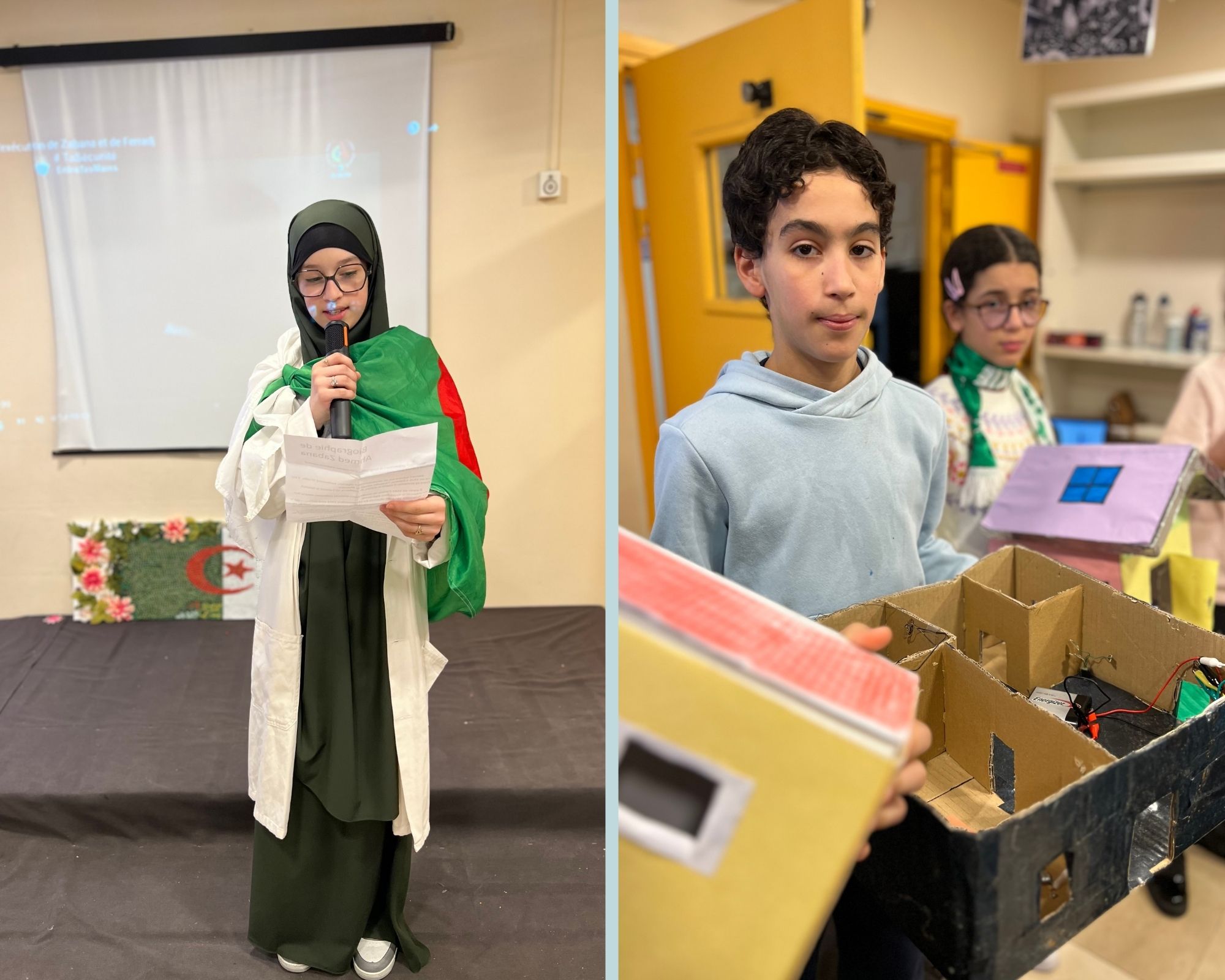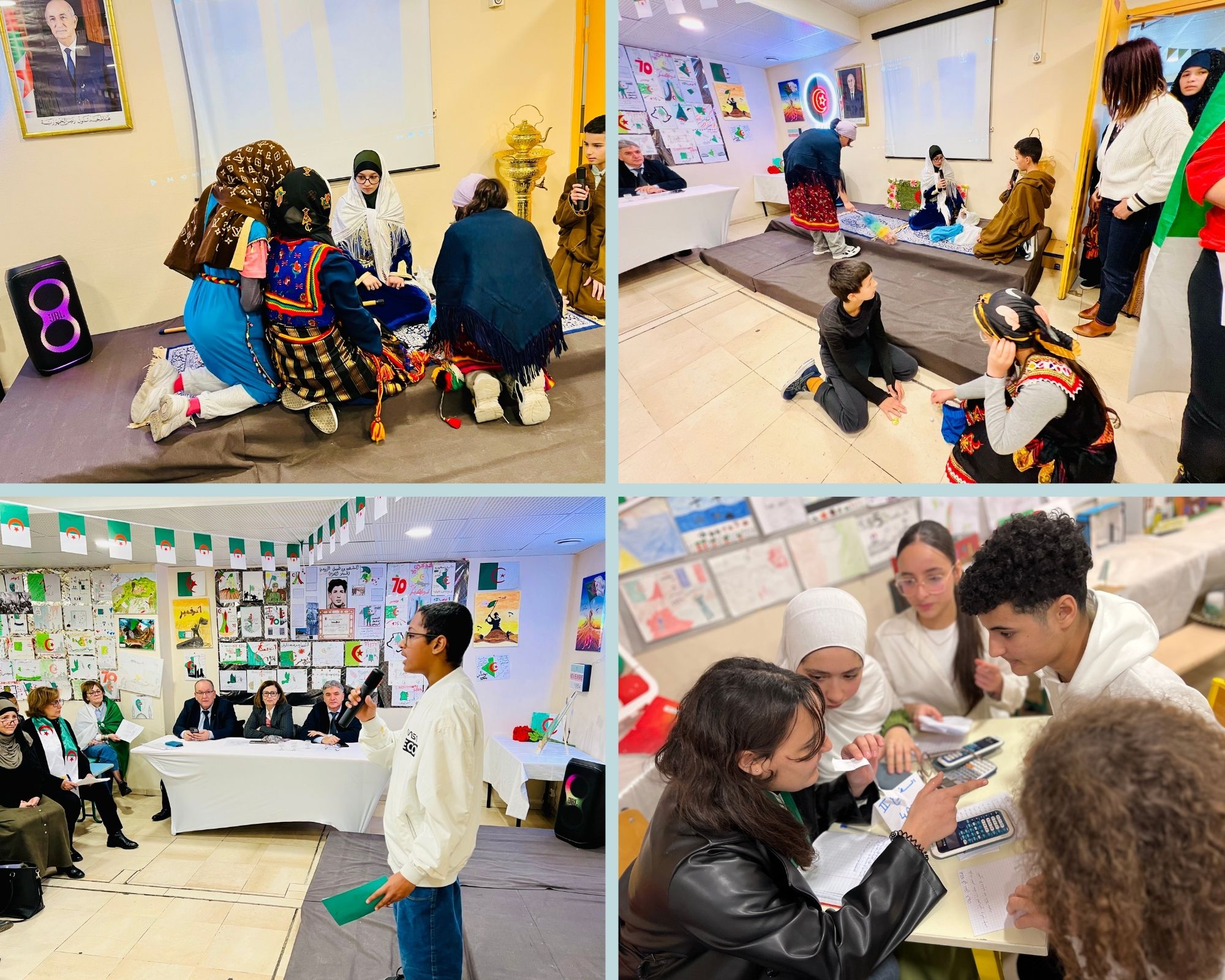 La troisième épreuve inter-classes en Maths a eu lieu, accompagnée par une présentation intitulée « Connaissiez-vous… la révolution ? ». Les élèves ont ensuite découvert des résumés de films et de poèmes, notamment une réflexion sur « M. Bennabi », ainsi qu’une biographie d’Ahmed Zabana.