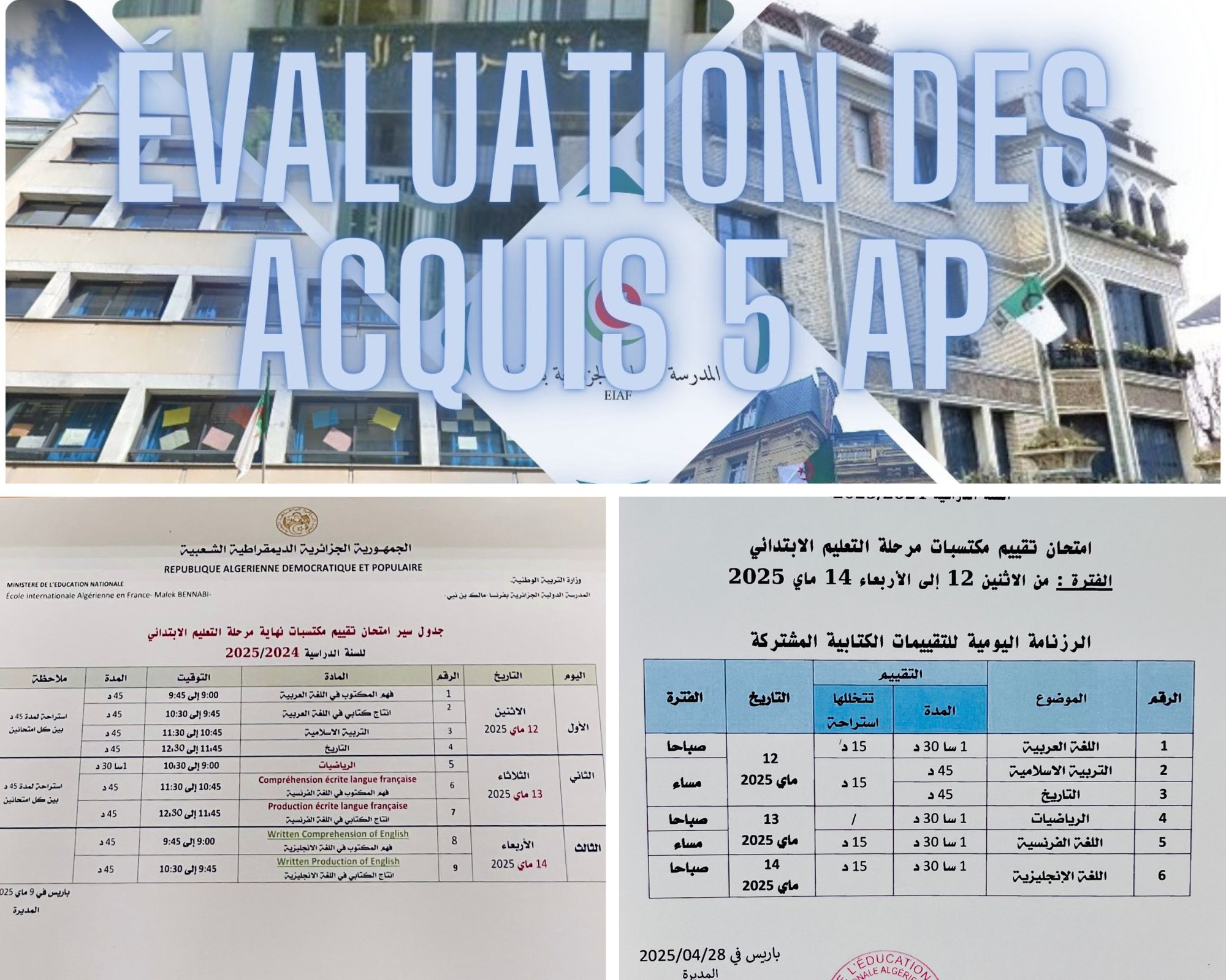 ÉVALUATION DES ACQUIS POUR NOS ÉLÈVES DE 5e ANNÉE PRIMAIRE