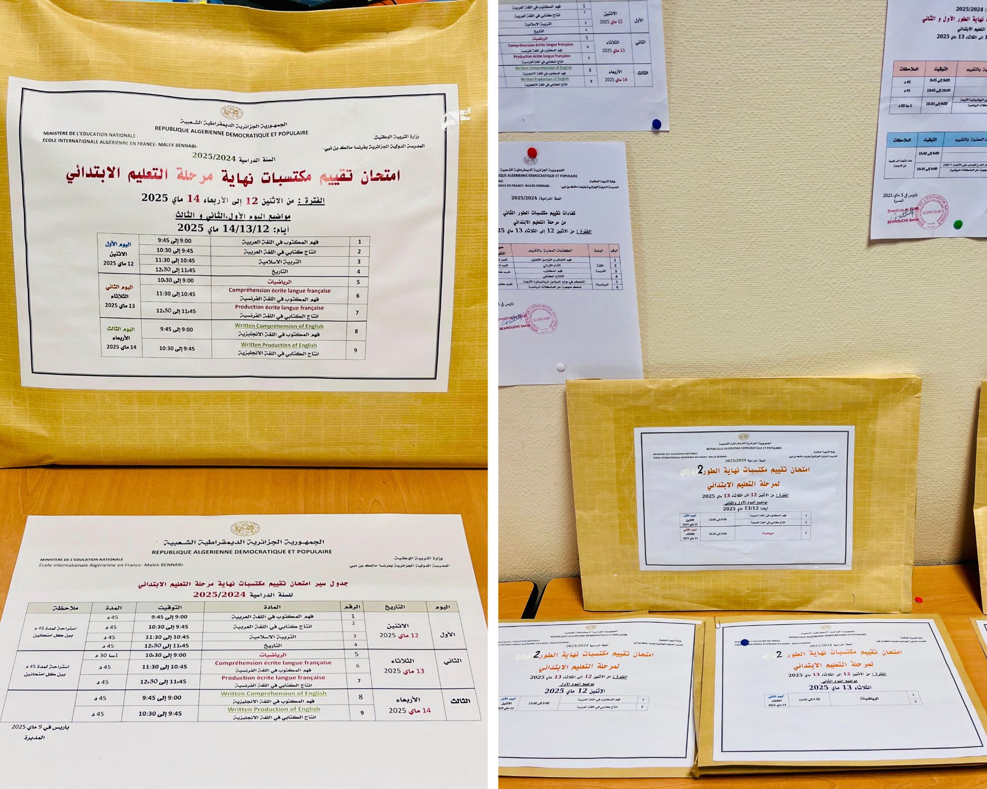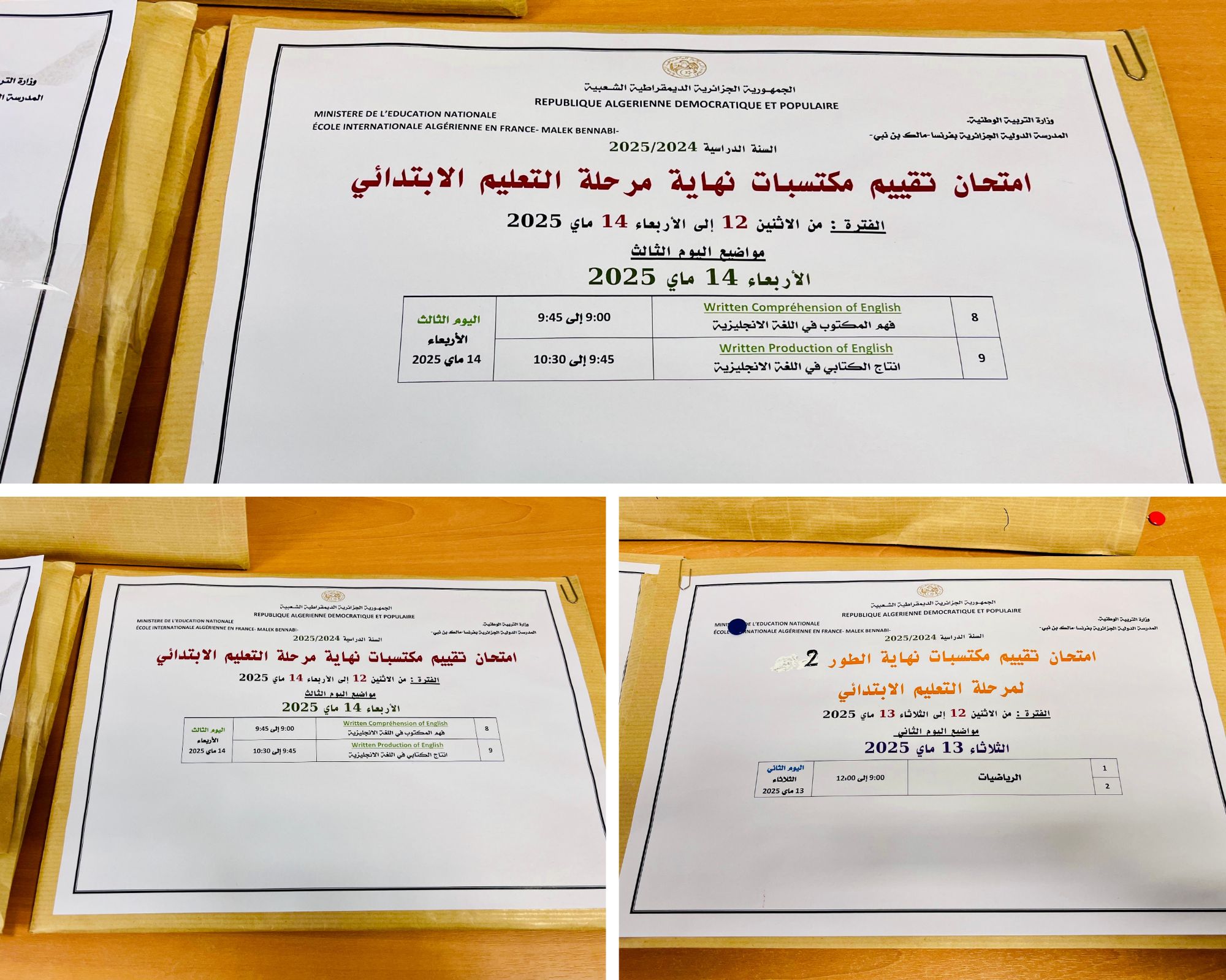Le calendrier des épreuves a été établi selon les directives officielles. Les évaluations se déroulent du lundi 12 mai au mercredi 21 mai 2025, couvrant les disciplines fondamentales telles que les langues arabe, anglaise et française, ainsi que les mathématiques.